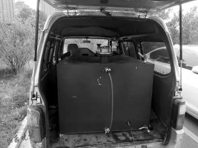 沒(méi)有牌照,車頂有監(jiān)控,從來(lái)不灑水。一臺(tái)灑水車,看似平平無(wú)奇,卻暗藏貓膩。8月10日傍晚,突擊執(zhí)法隊(duì)來(lái)到西環(huán)路上一個(gè)物流園區(qū)。在園區(qū)空地,一輛車進(jìn)入眾人視野。該車車身有“灑水車”字樣,但車輛卻沒(méi)有牌照,車頂部還裝一個(gè)監(jiān)控?cái)z像頭。在車窗的位置,留有一個(gè)手機(jī)號(hào)碼。執(zhí)法人員打開車底部柜子,發(fā)現(xiàn)這是一臺(tái)用灑水車偽裝的黑加油車。柜子里,加油表盤上面有每升汽油的價(jià)格,車輛啟動(dòng)后,加油槍便可以正常給汽車加注汽油。執(zhí)法人員隨即進(jìn)行了查處,查扣非法油品200升。黑加油車輛由公安交警部門查扣至指定停車場(chǎng)。目前,案件正在進(jìn)一步調(diào)查處理中。