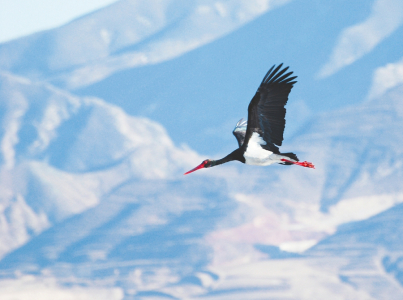 每年開(kāi)春,總會(huì)有不少省內(nèi)外游客慕名來(lái)到靈丘縣,來(lái)目睹世界瀕危珍禽、國(guó)家一級(jí)保護(hù)動(dòng)物黑鸛的風(fēng)采。步履輕盈潛行捕食、由低向高展翅盤旋,白腹黑衣、紅嘴赤腳的黑鸛與藍(lán)天白云相映成趣,成為峭壁與綠水間的一道亮麗景觀。