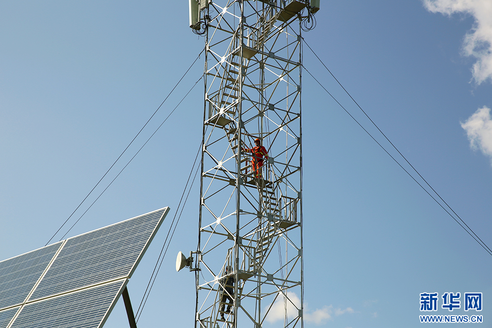 李穎在攀爬瞭望塔(拍攝于8月12日)。新華網石毅 攝