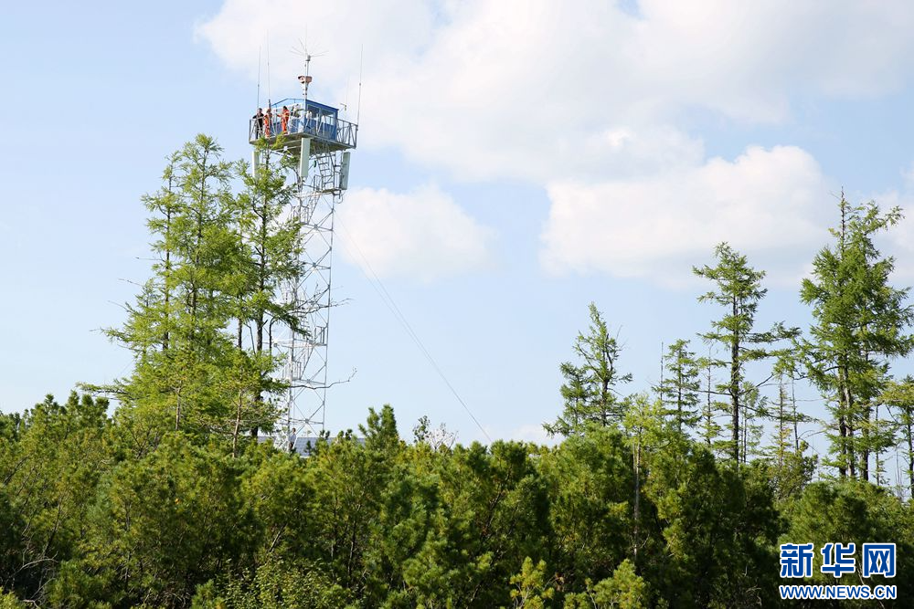 孫華和李穎在瞭望塔上觀察(拍攝于8月12日)。新華網石毅 攝