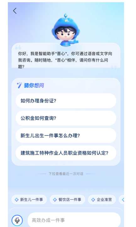 同時,依托螞蟻集團的百靈大模型與山西省政務服務積累的政務語料,構建權威專業(yè)的知識體系,省行政審批服務管理局與螞蟻集團支付寶公司聯(lián)合研發(fā)推出“三晉通”政務辦事智能體“晉心”,通過與數(shù)字人的互動問答,24小時不間斷提供的精準咨詢服務和個性化服務推薦。