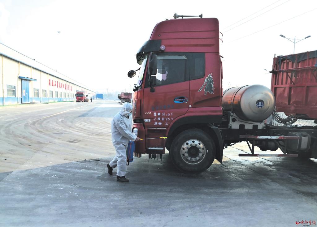 位于忻府區(qū)豆羅鎮(zhèn)建材工業(yè)園區(qū)的泰山石膏(忻州)有限公司在疫情防控工作中,嚴(yán)格人員進(jìn)廠測體溫、掃行程碼、登記和車輛消殺制度,嚴(yán)防疫情輸入。圖為1月20日,該公司安保人員正在對進(jìn)廠送原料的司機(jī)掃碼登記,并對車輛進(jìn)行消殺。 (本報記者 張劍雄 攝)