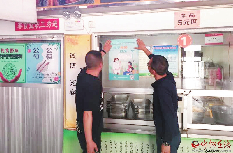 在學(xué)校食堂張貼宣傳海報(bào)