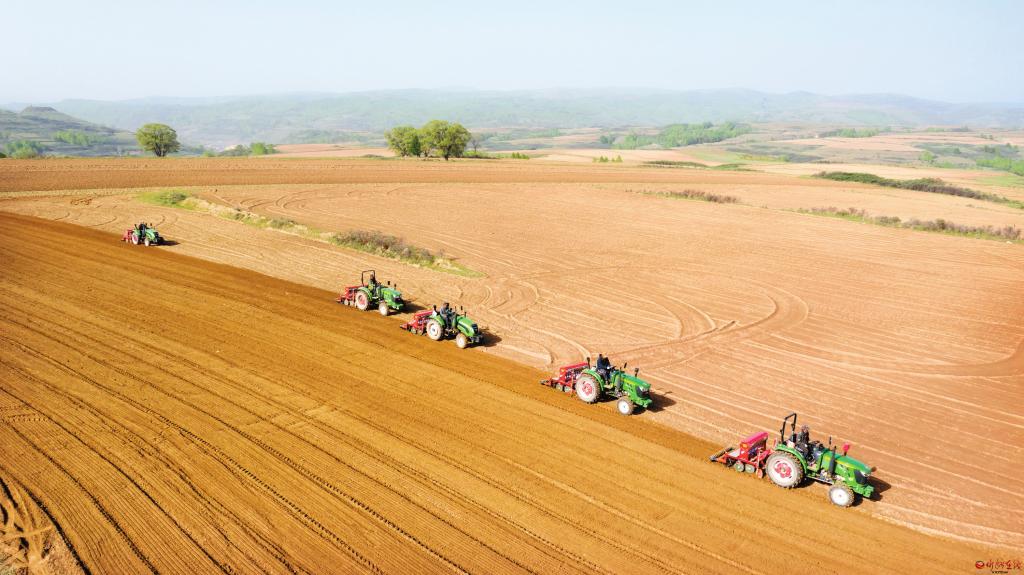 5月23日,寧武縣馬營(yíng)村村民正在使用機(jī)械種植莜麥。寧武縣是莜麥的傳統(tǒng)種植區(qū),2017年,“寧武莜麥”榮獲農(nóng)業(yè)部“農(nóng)產(chǎn)品地理標(biāo)志”登記保護(hù),2020年10月16日,中國(guó)糧食行業(yè)協(xié)會(huì)命名寧武縣為“中國(guó)高原莜麥之鄉(xiāng)”。寧武縣現(xiàn)已建成莜麥標(biāo)準(zhǔn)化種植基地5萬(wàn)畝,產(chǎn)量達(dá)到1260萬(wàn)公斤,占到山西省莜麥總產(chǎn)量的10%以上,培育發(fā)展起以“蘆芽農(nóng)夫”“鄉(xiāng)之味”等自主品牌為龍頭的莜麥深加工企業(yè)。 (曹建國(guó) 攝)