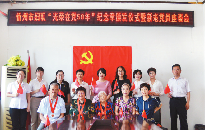 本報(bào)訊 6月25日上午,忻州市婦聯(lián)舉行“光榮在黨50年”紀(jì)念章頒發(fā)儀式暨新老黨員座談會(huì)。市婦聯(lián)機(jī)關(guān)在職黨員干部和老黨員代表參加。