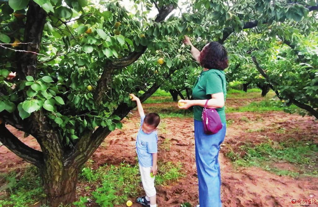 又到瓜果成熟季,在忻府區(qū)奇村鎮(zhèn)趙家莊的生態(tài)莊園里,香甜可口的水果掛滿枝頭,吸引了很多市民前來享受采摘的樂趣?!拔颐磕甓紩?huì)帶著孩子來這里采摘,這里的水果不打農(nóng)藥、不催熟,自然生長(zhǎng),口感特別好。通過采摘不僅能增加父母和孩子之間感情交流,還能讓孩子們體驗(yàn)勞動(dòng)的辛苦和快樂,了解各類水果的生長(zhǎng)過程,感受大自然的奇特和美妙?!闭诓烧睦钆啃χf。 (記者 李 濤 攝影報(bào)道)