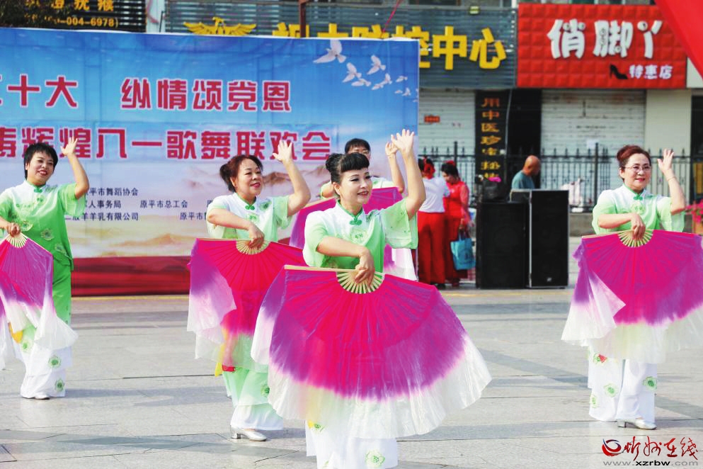 上午8時,在現(xiàn)場觀眾的歡呼聲中,歌舞聯(lián)歡會激情開幕。城西社區(qū)藝術(shù)鑼鼓隊首先上場,激越的鼓點鏗鏘有力、澎湃高亢,打出了振原平雄風(fēng)、鑄原平輝煌的雄心壯志;旗韻模特藝術(shù)協(xié)會的廣場舞《唱支山歌給黨聽》,舞姿翩翩、悠揚情深;廣場舞《我和我的祖國》,體現(xiàn)了“祖國偉大,我愛祖國”的主題;廣場舞《盛世歡歌》《共筑中國夢》,深情抒發(fā)了同心共筑中國夢的時代激情;快樂健身舞蹈隊的《扇子舞》,別出心裁,特色鮮明;原平市大金操隊的廣場舞《火了 火了 中國》和觀眾發(fā)生強烈共鳴,現(xiàn)場許多人情不自禁舞動起來。聯(lián)歡會以團結(jié)協(xié)作、勇敢奮進為精神,向八一建軍節(jié)獻禮高歌。
