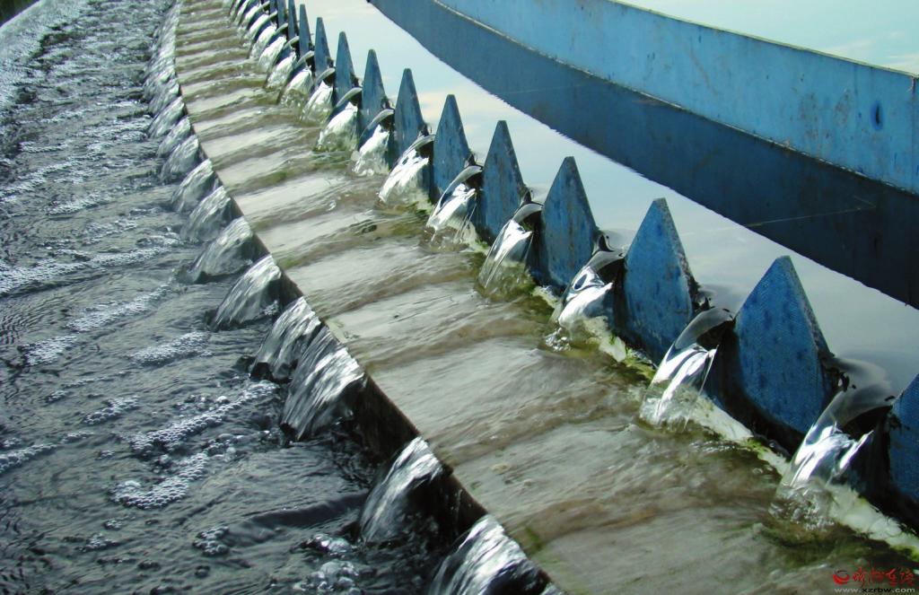 忻州市污水處理廠(chǎng)于2007年8月正式投運(yùn),2015年底完成提升改造工程,2017年底完成污泥處置工程,是忻州市規(guī)模最大的環(huán)保項(xiàng)目。污水處理規(guī)模為日處理污水6.5萬(wàn)噸,污泥處理部分采用板框隔膜壓濾工藝,泥餅含水率60%,通過(guò)發(fā)電廠(chǎng)焚燒,進(jìn)行無(wú)害化處置。圖為污水廠(chǎng)二沉池出水。 (任林霞 攝