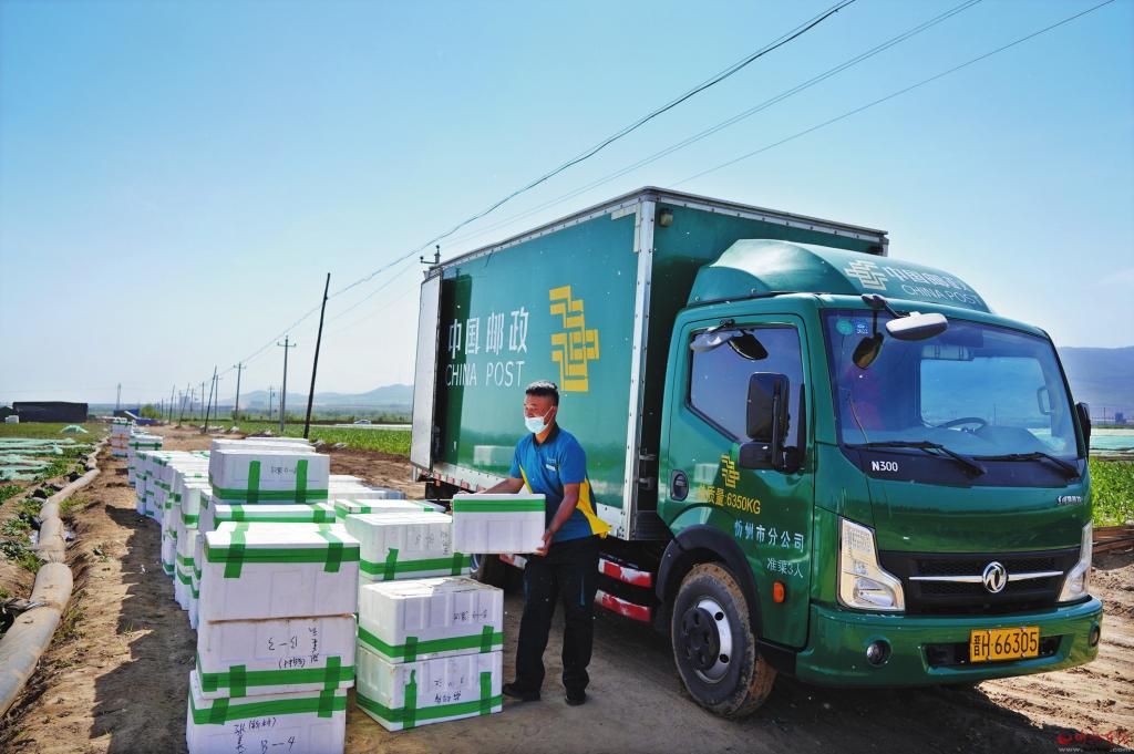 6月18日,天貓網(wǎng)購(gòu)節(jié),五寨縣郵政公司將郵政運(yùn)輸車輛直接開到該縣蔬菜生產(chǎn)基地,將新鮮的蔬菜及時(shí)發(fā)往全國(guó)各地。 張向榮攝