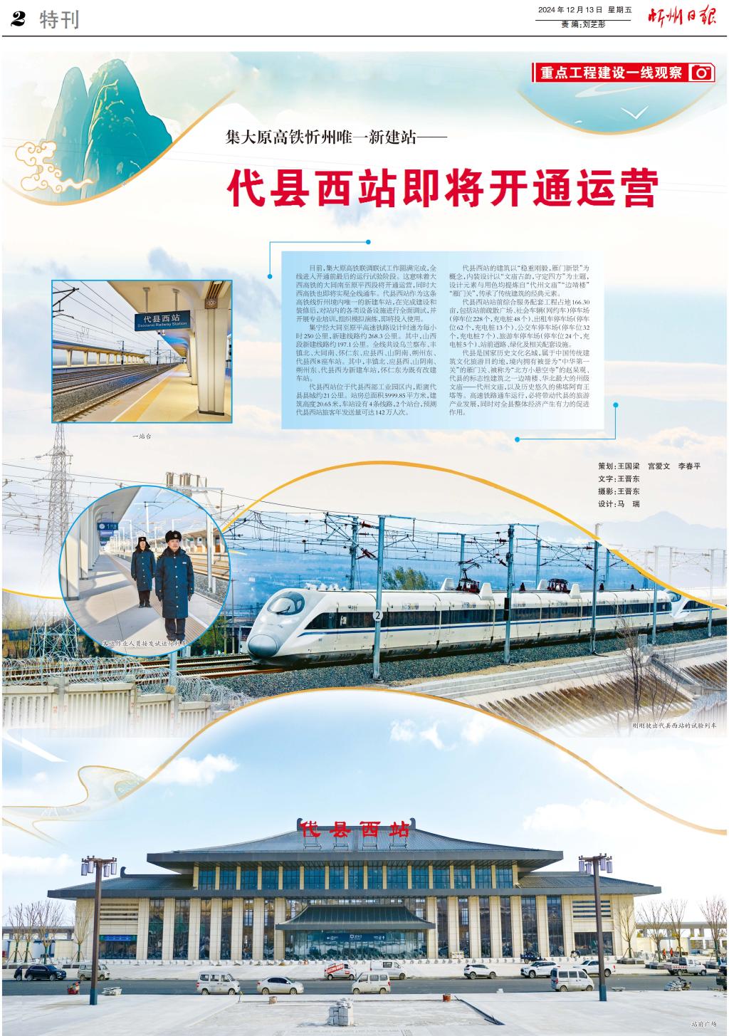 目前,集大原高鐵聯(lián)調(diào)聯(lián)試工作圓滿完成,全線進入開通前最后的運行試驗階段。這意味著大西高鐵的大同南至原平西段將開通運營,同時大西高鐵也即將實現(xiàn)全線通車。代縣西站作為這條高鐵線忻州境內(nèi)唯一的新建車站,在完成建設和裝修后,對站內(nèi)的各類設備設施進行全面調(diào)試,并開展專業(yè)培訓,組織模擬演練,即將投入使用。