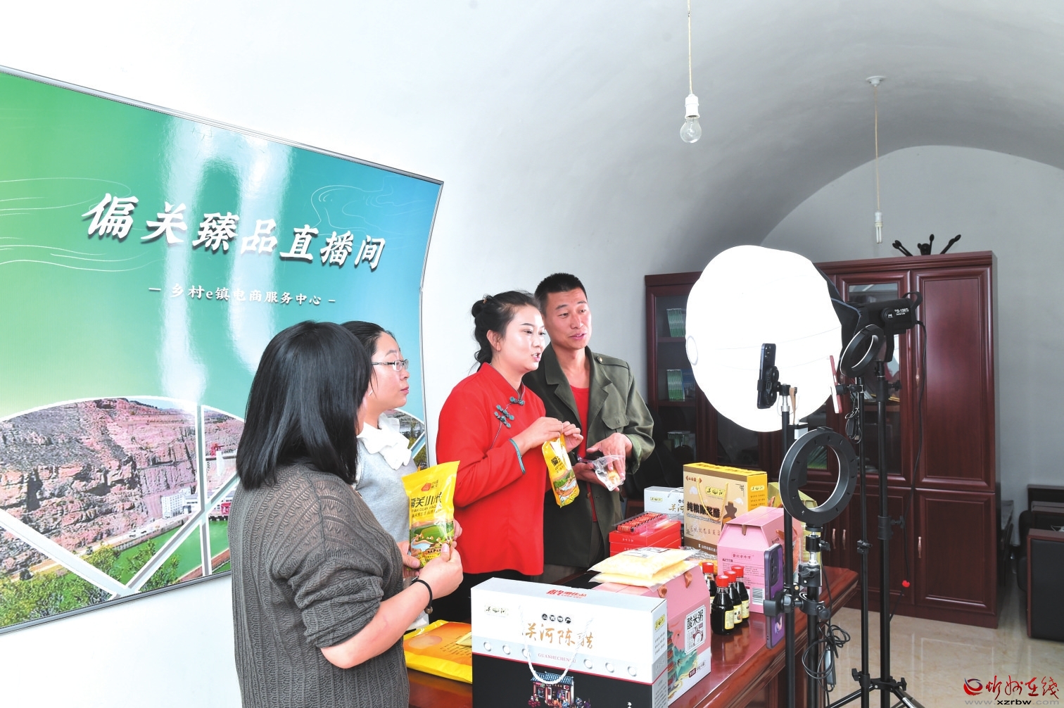 偏關(guān)鄉(xiāng)村e(cuò)鎮(zhèn)公共服務(wù)中心直播帶貨現(xiàn)場(chǎng)。本報(bào)記者 馮曉磊 攝