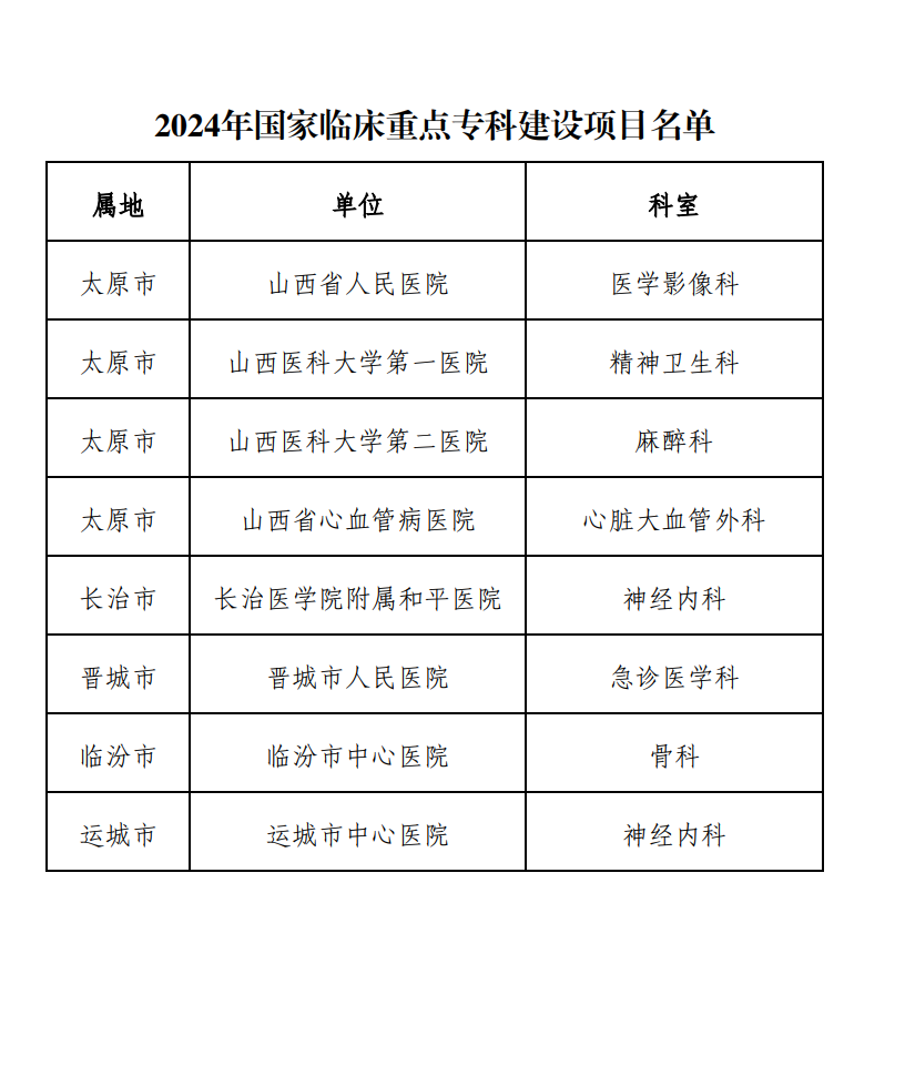 黃河新聞網(wǎng)訊(記者孫宇佳)日前,山西省衛(wèi)健委對擬確定為2024年國家臨床重點??平ㄔO(shè)項目的醫(yī)院及??泼麊芜M行了公示。據(jù)悉,本次名單根據(jù)《山西省衛(wèi)生健康委辦公室關(guān)于印發(fā)〈“十四五”期間山西省臨床重點專科建設(shè)實施方案〉的通知》和國家臨床重點??平ㄔO(shè)項目申報工作總體安排,在各市衛(wèi)生健康委和委直屬有關(guān)醫(yī)院積極申報后,經(jīng)山西省衛(wèi)生健康委組織省醫(yī)療服務(wù)評價中心和省級專家進行評審后產(chǎn)生。
