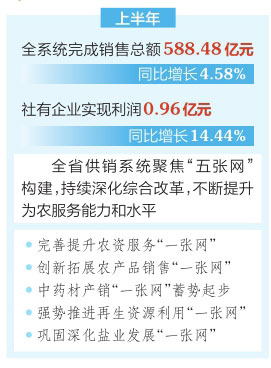 本報(bào)訊(記者高瑋)7月21日,全省供銷系統(tǒng)上半年經(jīng)濟(jì)運(yùn)行分析暨“五張網(wǎng)”構(gòu)建現(xiàn)場(chǎng)推進(jìn)會(huì)在長(zhǎng)治市武鄉(xiāng)縣召開。今年以來(lái),全省供銷系統(tǒng)以“五張網(wǎng)”構(gòu)建為統(tǒng)領(lǐng),推動(dòng)供銷工作全面提質(zhì)增效,經(jīng)濟(jì)運(yùn)行穩(wěn)定向好。上半年,全系統(tǒng)完成銷售總額588.48億元,同比增長(zhǎng)4.58%;社有企業(yè)實(shí)現(xiàn)利潤(rùn)0.96億元,同比增長(zhǎng)14.44%。