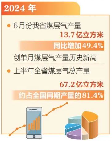 7月23日,記者從山西省統(tǒng)計(jì)局獲悉,今年6月份我省煤層氣產(chǎn)量13.7億立方米,同比增加49.4%,創(chuàng)單月煤層氣產(chǎn)量歷史新高。今年上半年全省煤層氣總產(chǎn)量67.2億立方米,約占全國(guó)同期產(chǎn)量的81.4%。