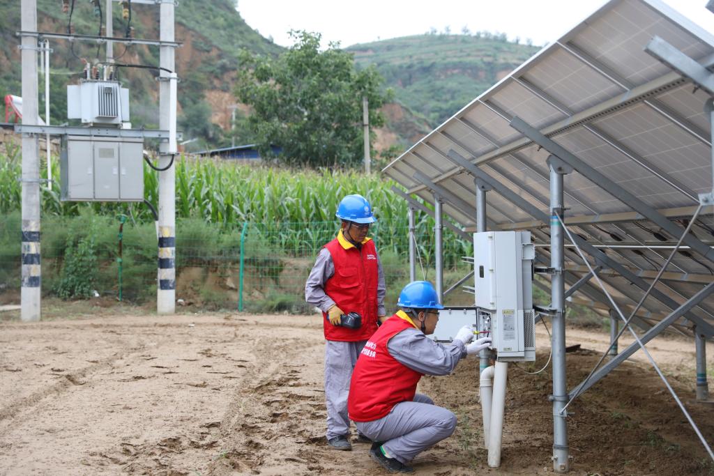 國網(wǎng)山西電力太行黎明共產(chǎn)黨員服務(wù)隊在檢查村級光伏電站運營情況。(新華社發(fā))王航 攝