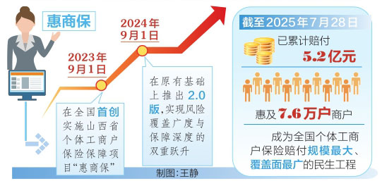 省市場監(jiān)管局相關(guān)負(fù)責(zé)人表示,“惠商保”項(xiàng)目以“小保險(xiǎn)”撬動(dòng)“大民生”,通過“兜底+賦能”的雙重保障,將政策關(guān)懷轉(zhuǎn)化為個(gè)體工商戶可感知、可量化的獲得感。項(xiàng)目將持續(xù)迭代升級,在風(fēng)險(xiǎn)保障深度、服務(wù)賦能精度、生態(tài)共建廣度上發(fā)力,助力個(gè)體工商戶從“生存型”向“價(jià)值型”躍遷,為個(gè)體經(jīng)濟(jì)高質(zhì)量發(fā)展注入持久動(dòng)能。截至2025年7月28日,“惠商保”已累計(jì)賠付5.2億元,惠及7.6萬戶商戶,成為全國個(gè)體工商戶保險(xiǎn)賠付規(guī)模最大、覆蓋面最廣的民生工程。