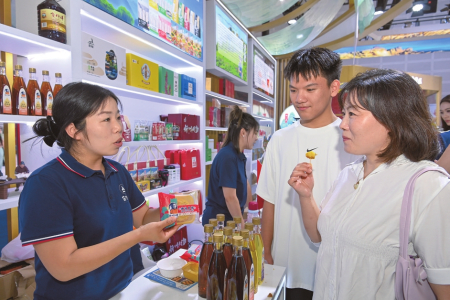 8月21日,忻州展區(qū),市民正在品嘗神池月餅,了解胡麻油制作過程。本報(bào)記者申晉光攝