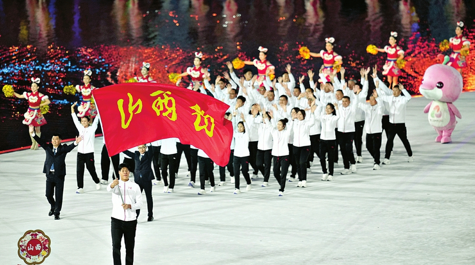 11月9日,第十五屆全國運(yùn)動(dòng)會(huì)開幕式在廣東奧林匹克體育中心舉行。圖為當(dāng)日,山西省體育代表團(tuán)在入場(chǎng)儀式上。