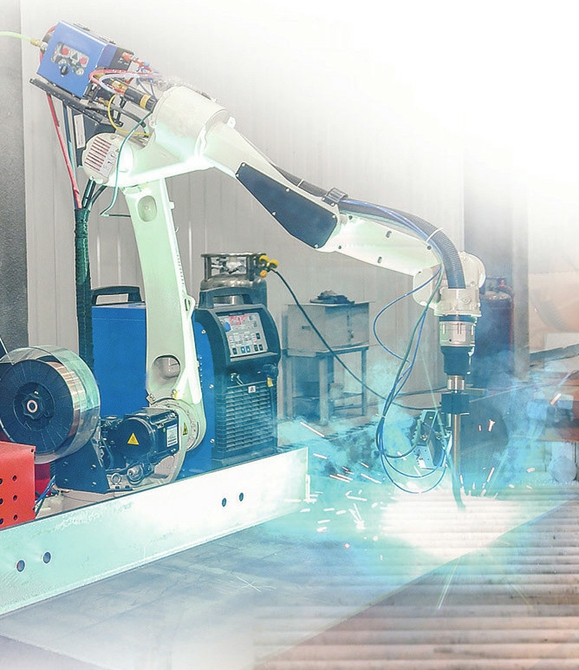 山西中部智造科技有限公司內,智能機器人在進行焊接作業(yè)。閆銳鵬攝