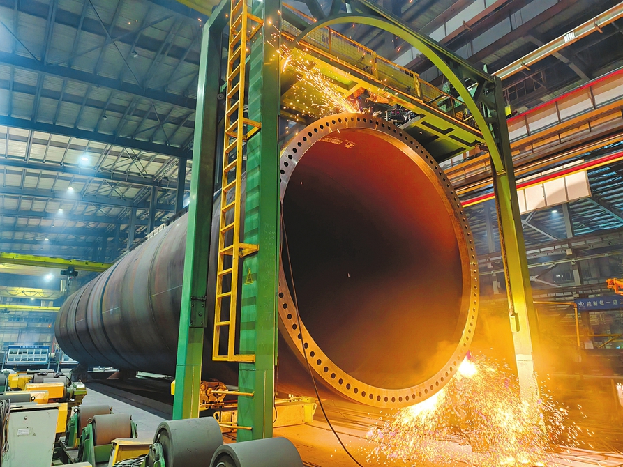 1月19日,在省級(jí)裝配式建筑產(chǎn)業(yè)鏈“鏈核”企業(yè)山西鋼構(gòu)科工有限公司智能制造車(chē)間內(nèi),一臺(tái)巨型壓力容器正進(jìn)行焊接作業(yè)。輥道與龍門(mén)架穩(wěn)穩(wěn)托舉著數(shù)十米長(zhǎng)的鋼構(gòu)件,自動(dòng)化系統(tǒng)實(shí)時(shí)監(jiān)測(cè)焊縫質(zhì)量,全力保障昔陽(yáng)、陽(yáng)曲、廣靈、屯留等地風(fēng)電項(xiàng)目塔筒制作。 賈曉瑞 王宇攝