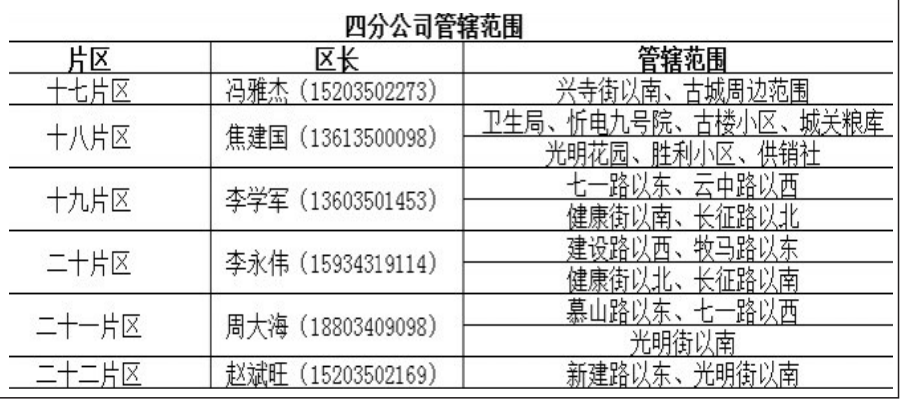 忻州熱力有限公司公布22個供熱片區(qū)及負責人電話