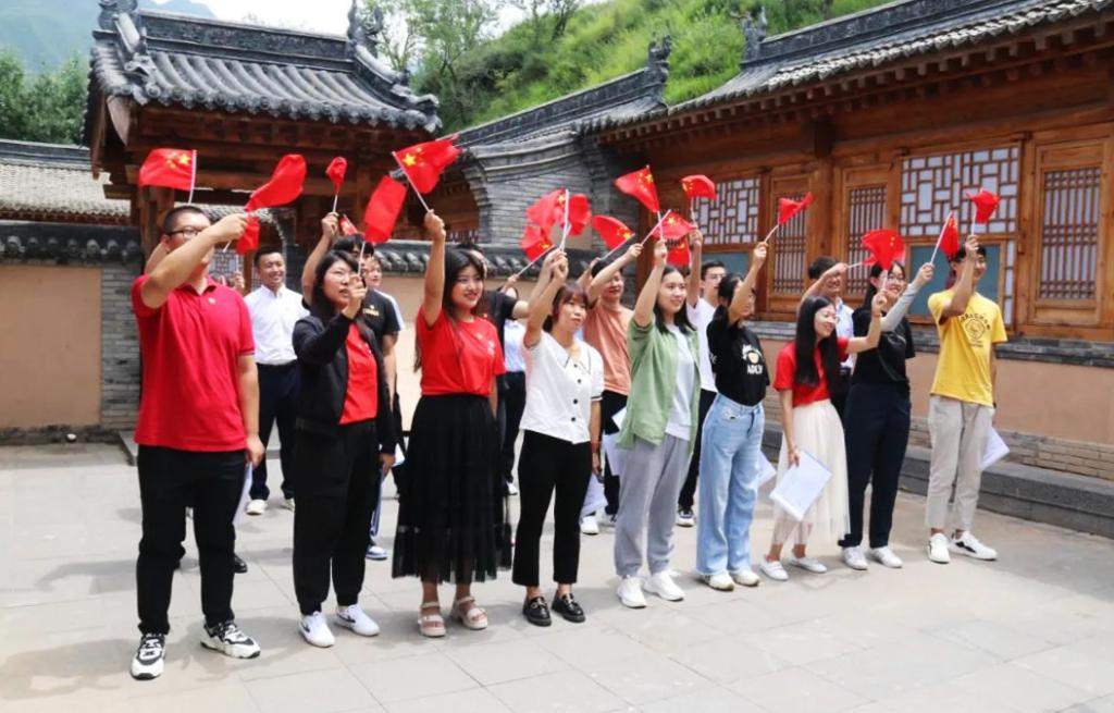 座談會后,正式開啟了此次實踐活動的第一站。學生們在毛主席路居伯強紀念館前重溫入黨誓詞??h委書記崔崢嶺專程到伯強,與同學們共同參觀了路居館,深入了解伯強的紅色基因和中國共產黨領導下的繁峙經濟社會發(fā)生的巨大變化。