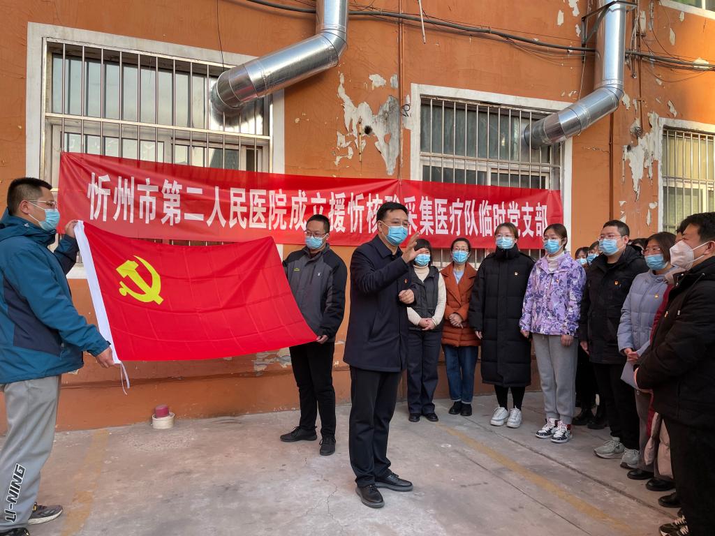 哪里有任務,哪里就有黨旗飄揚。在疫情防控一線成立臨時黨組織,是忻州市第二人民醫(yī)院黨委堅持黨建引領,充分發(fā)揮基層黨組織戰(zhàn)斗堡壘作用和共產黨員先鋒模范作用全力投身抗擊疫情防控工作的一個縮影,也是全體支援人員聽黨指揮、不負初心的使命擔當。自忻府區(qū)發(fā)生輸入性疫情以來,該院于2月23日和25日緊急抽調101名醫(yī)療骨干隊員趕赴忻府區(qū)支援核酸采集任務。連日來,全體支援人員克服困難,全力以赴,24小時堅守在抗擊疫情第一線,為打贏這場疫情阻擊戰(zhàn)貢獻著二院力量。