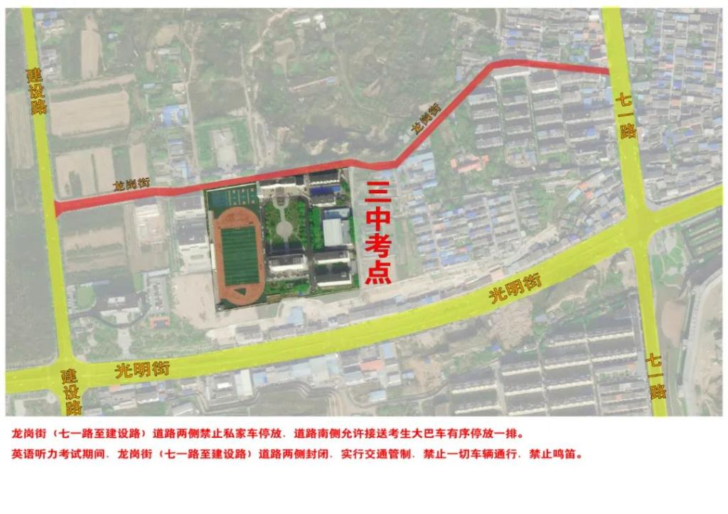 英語聽力考試期間,龍崗街(七一路至建設(shè)路)道路兩側(cè)封閉,實行交通管制,禁止一切車輛通行,禁止鳴笛。