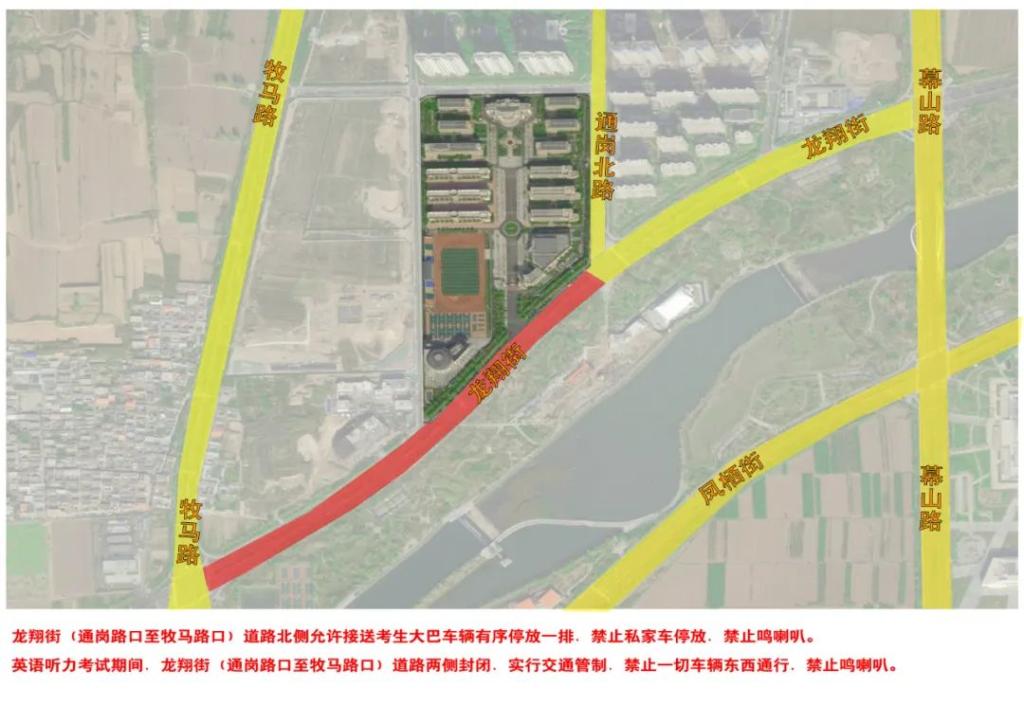 禁行路段:英語聽力考試期間,龍翔街(通崗路口至牧馬路口)道路兩側(cè)封閉,實行交通管制,禁止一切車輛東西通行,禁止鳴喇叭。