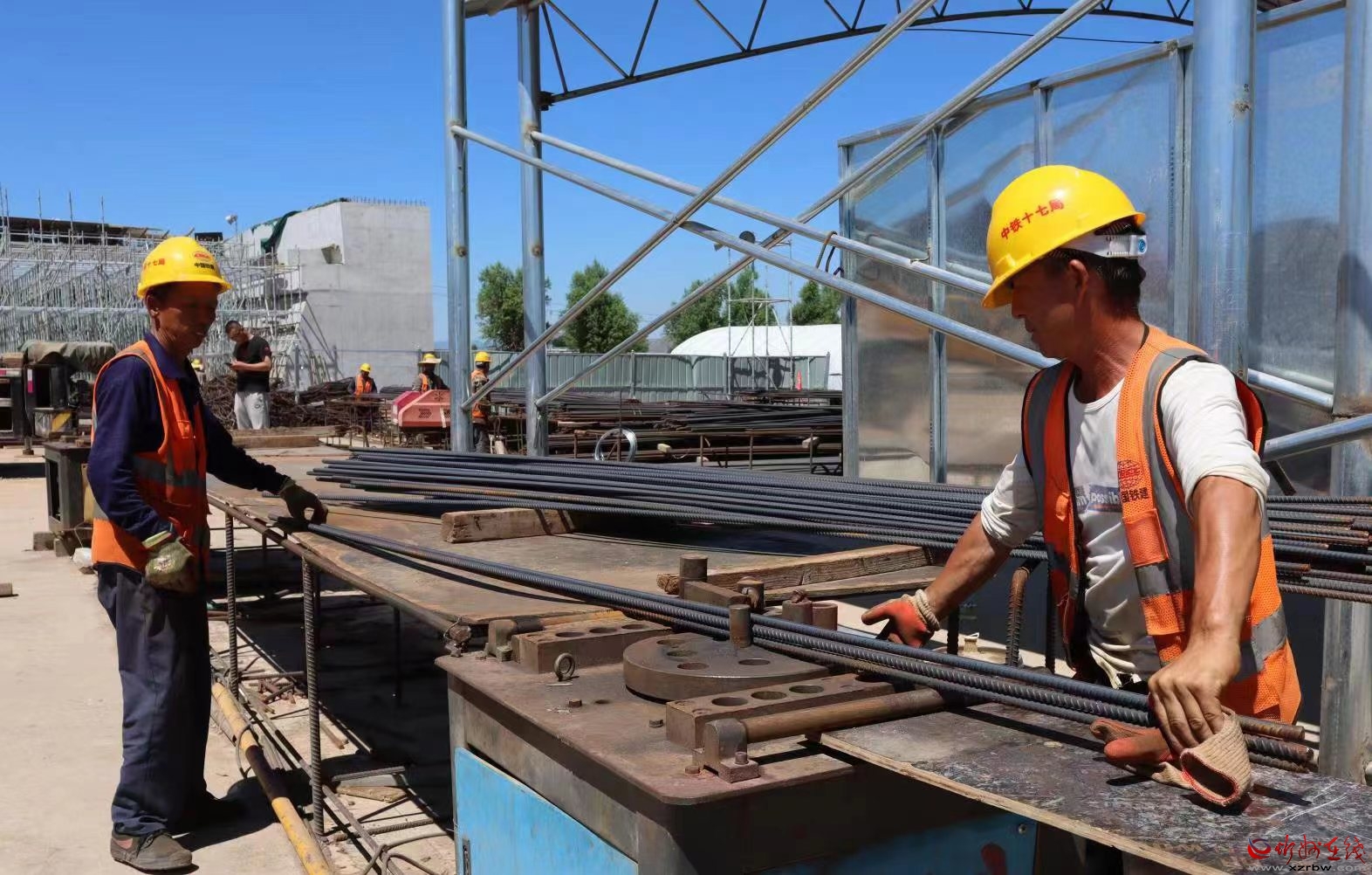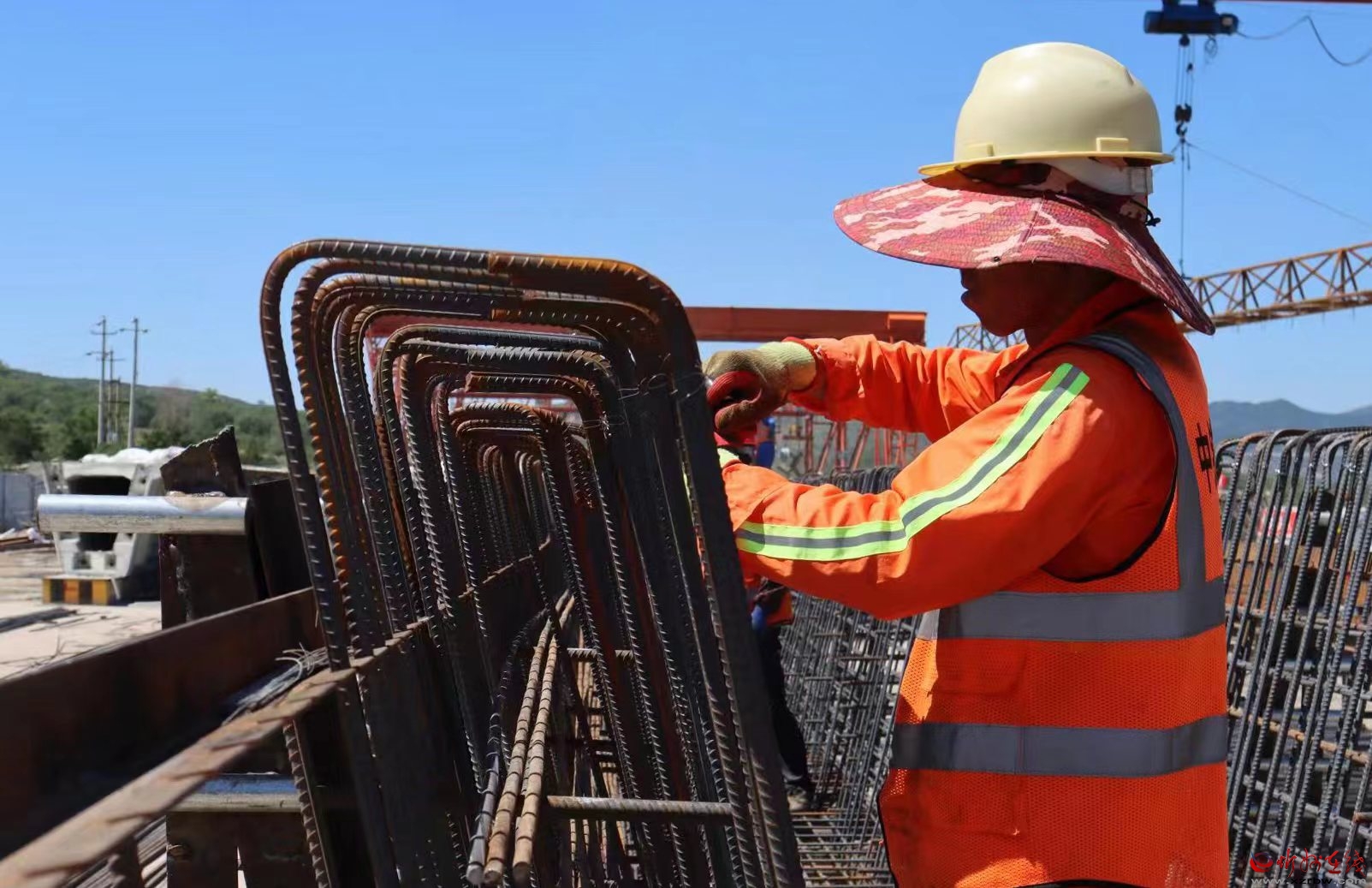 在南北通道菱形立交橋工地,密密匝匝的鋼筋林立如網(wǎng),奮戰(zhàn)在一線的工人們頂著烈日、冒著酷暑、汗流浹背、干勁不減,技術(shù)員正在仔細(xì)地檢查著每一個(gè)接口、鋼筋工熟練并準(zhǔn)確地排布著每一組鋼筋結(jié)構(gòu),井然有序,規(guī)范自如?!澳媳蓖ǖ懒庑瘟⒔粯蚬こ淌琼?xiàng)目中兩處混凝土澆筑的其中之一,目前,工程前期準(zhǔn)備工作已接近尾聲,預(yù)計(jì)7月22日完成混凝土澆筑,全部現(xiàn)澆工程將在9月10日前完成?!表?xiàng)目一隊(duì)負(fù)責(zé)人尹耀軍自信滿滿地說(shuō)。