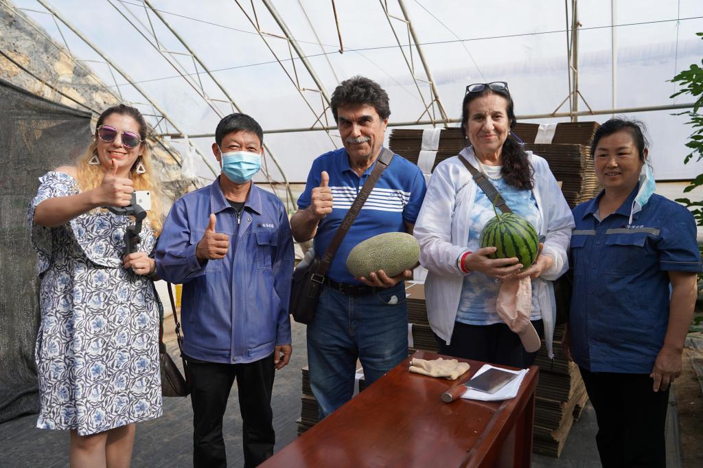 外國網(wǎng)紅博主抱起榆嶺窊有機(jī)蔬菜大棚的大西瓜