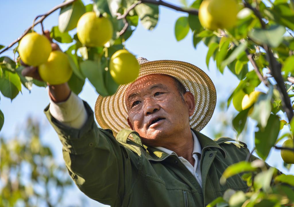 原平市同川鎮(zhèn)的梨農(nóng)們精心挑選酥梨。王坤 攝