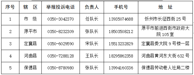 忻州市勞動(dòng)保障監(jiān)察投訴舉報(bào)電話