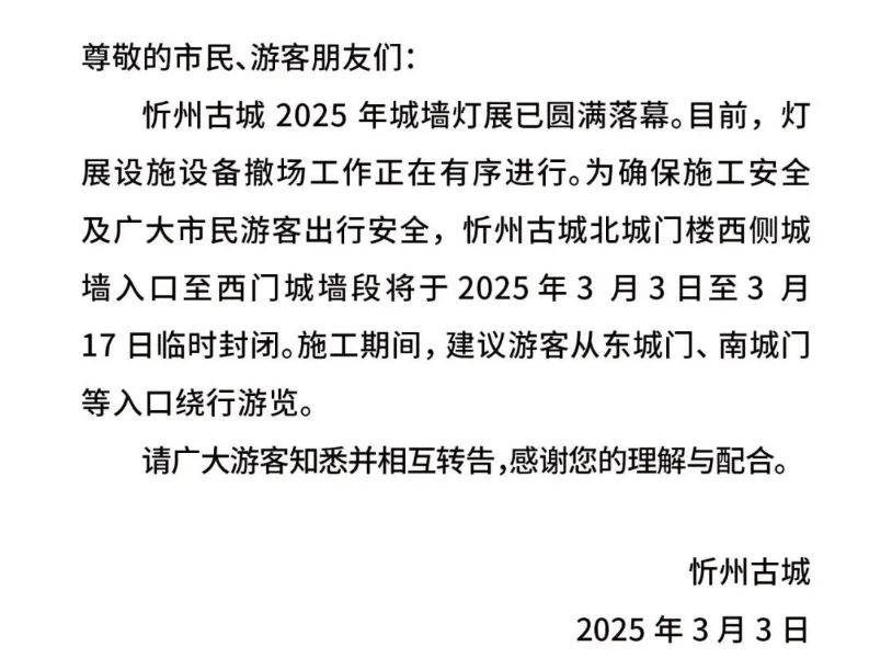 忻州古城:暫停開(kāi)放公告!
