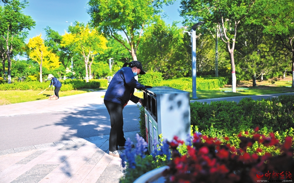 遺山公園有“10分鐘保潔圈”——在公園20多萬平方米的范圍內,任意一處出現(xiàn)垃圾,在10分鐘內必須清理完畢。保潔員每天從早6時到晚10時,不間斷地在各自責任區(qū)域巡回檢查、清理。起初,一名保潔員一天的微信步數(shù)達到3萬,意味著每天行走近20公里?,F(xiàn)在配備了電動三輪車,降低了工作強度,提高了作業(yè)效率。