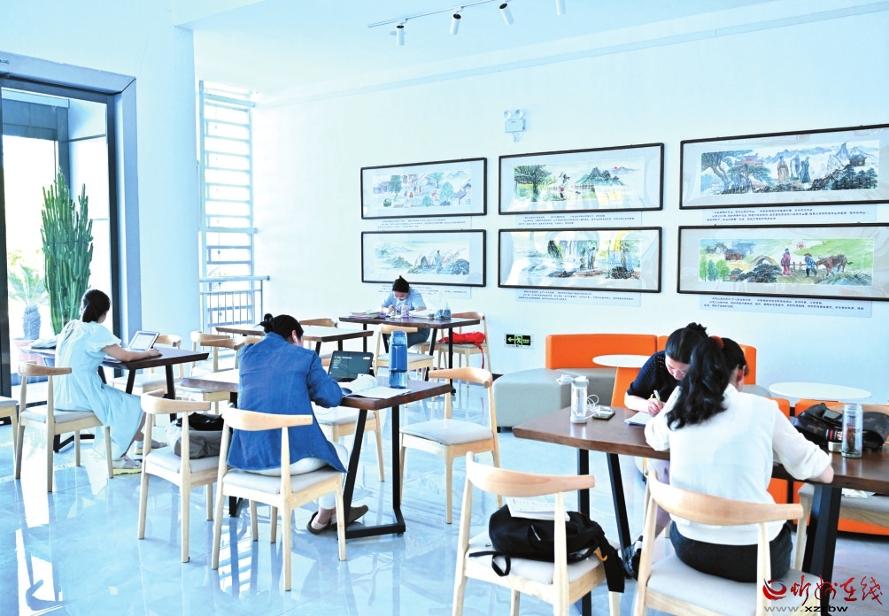 在公園遺山文化館一樓大廳設置純公益性的“城市書房”,配置免費的直飲水機、儲物柜和休閑座椅。前不久,有位經(jīng)常在此復習的青年成功“上岸”,還特地和父母一起來公園表示感謝。