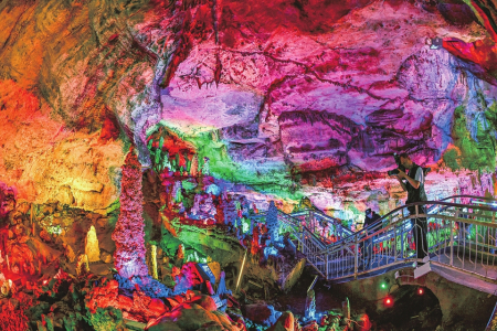 7月29日,忻州市禹王洞景區(qū)內(nèi),游人正在觀賞奇特的鐘乳石景觀。位于系舟山腰的禹王洞憑借洞內(nèi)8℃—11℃的恒溫及獨特地質(zhì)景觀,成為游客避暑納涼的熱門選擇。