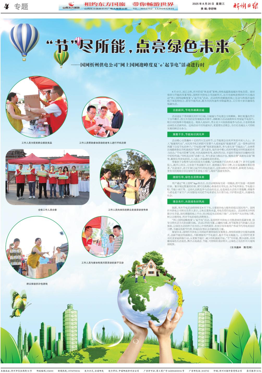 8月13日,雖已立秋,忻州仍受“秋老虎”影響,持續(xù)高溫推高城市用電負(fù)荷。面對保供與節(jié)能的雙重考驗,國網(wǎng)忻州供電公司創(chuàng)新形式,在歷史韻味濃厚的忻州古城啟動“網(wǎng)上國網(wǎng)迎峰度夏‘e’起節(jié)電”活動。活動將科技賦能的線上互動與熱情洋溢的線下體驗相結(jié)合,倡導(dǎo)節(jié)能風(fēng)尚,既為市民傳遞科學(xué)降溫理念,又引導(dǎo)大家共建綠色低碳生活。