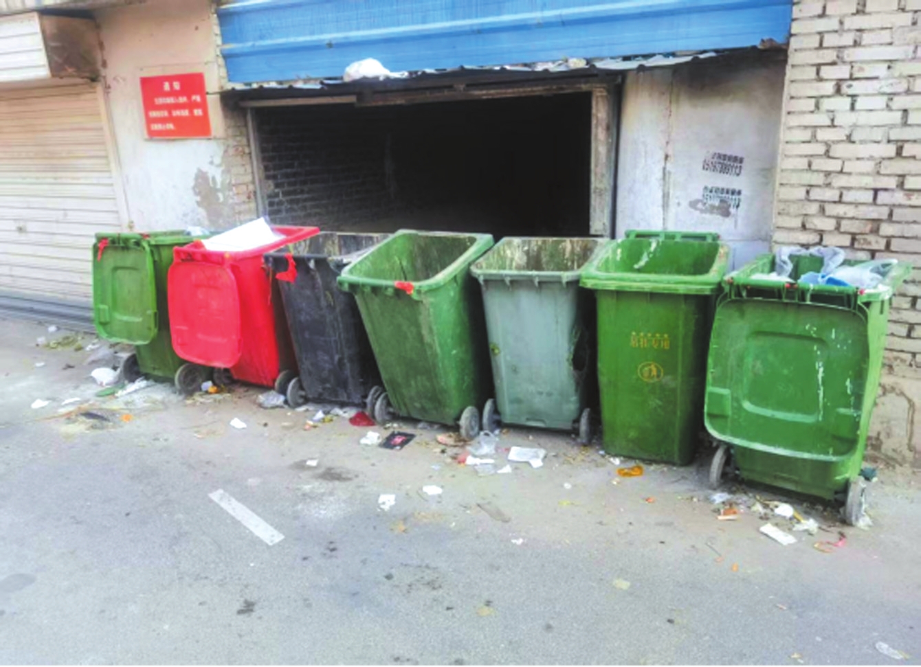 忻府區(qū)和平東街玻璃廠宿舍垃圾桶周圍臟亂