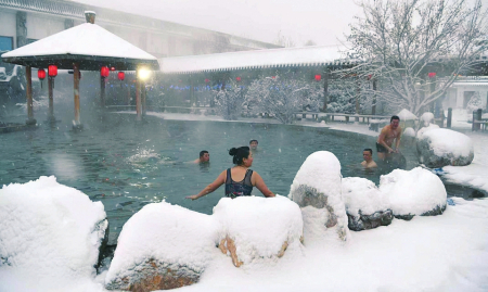初冬,清晨的薄霧尚未散盡,“溫泉之鄉(xiāng)”奇村鎮(zhèn)南高村的溫泉民宿小院里,來自內(nèi)蒙古包頭的游客杜鵬程正悠閑地泡著溫泉?!懊磕赀@時候都來住上一個月,老寒腿舒服多了。”他愜意地說。