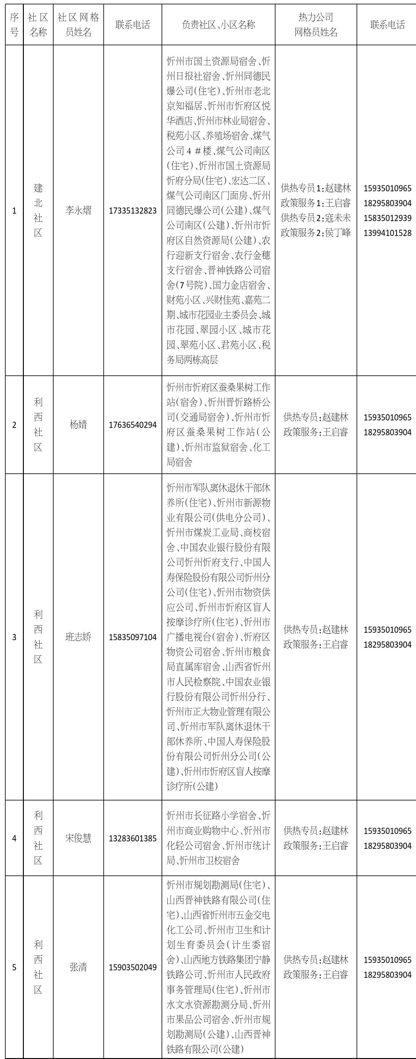 忻州城區(qū)供熱三片區(qū)網(wǎng)格員信息公示