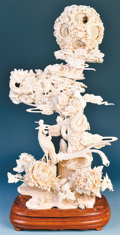 在常設陳列“嶺南民間百藝”展廳,可以看到更多巧奪天工的工藝品。象牙雕刻是廣州地區(qū)富有特色的一項傳統(tǒng)工藝,多層象牙球則是最能代表廣州象牙鏤雕技藝的作品?!斑@個象牙球有43層。”曾翔指著一件牙雕作品說,“它是將一塊完整的象牙鏤空為層層相套的球體,每一層都可以獨立轉(zhuǎn)動,球面上還有精細雕花?!痹缭谒未陀兄谱飨笱狼虻挠涊d,如今,象牙球最多已做到57層。