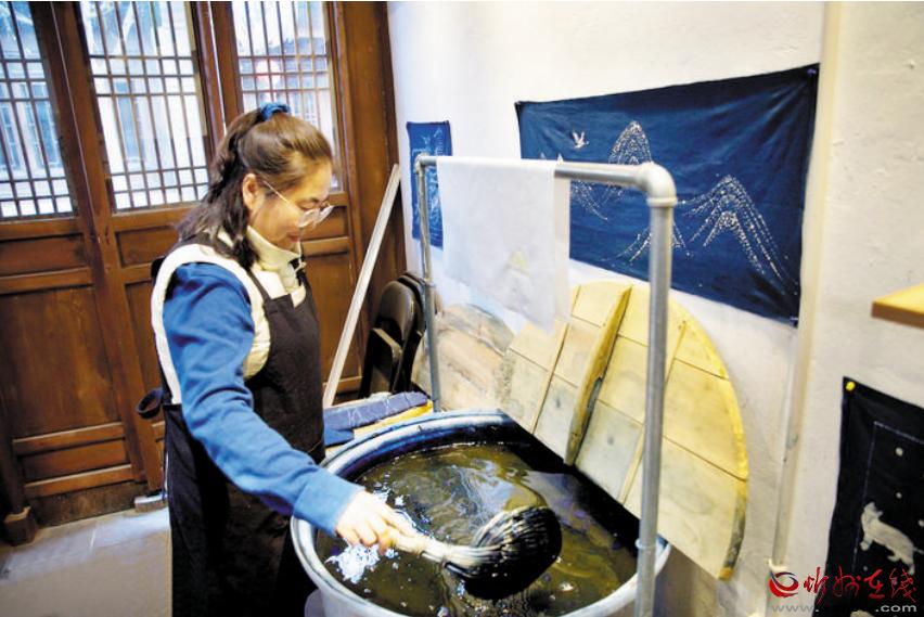 “染缸是我最寶貝的東西。我對它就像對待孩子,不能冷著、熱著、累著、餓著?!壁w慧說,天然染料的缸需要“養(yǎng)”,冬天冷了烤暖氣,夏天熱了吹空調(diào),還要不時添加?xùn)|西,“這個缸我‘養(yǎng)’了四年多,叫它‘藍(lán)寶寶’?!?/span>