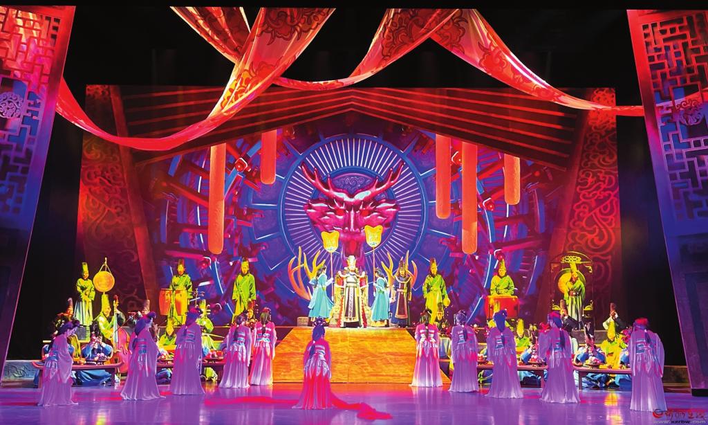 “傳統(tǒng)文化不應該只停留在紙面或解說里,可以通過更直觀、更形象的方式,讓藝術和公眾形成一種互動,滿足公眾對文化可感的期待?!笨倢а輨⒔ū蟊硎??!朵镌囱彭崱氛且劳幸魳窞檩d體,融合了琵琶、竹笛和笙等中國傳統(tǒng)器樂,以及繁峙秧歌戲、北路梆子、八音會等地方特色文化元素,展現出北魏時期民族音樂在融合中兼收并蓄的多元文化特質?!耙魳贰焙汀罢Z言”的雙重表述,通過服裝、燈光、造型及多媒體舞美技術,呈現出令人耳目一新的華美樂章。