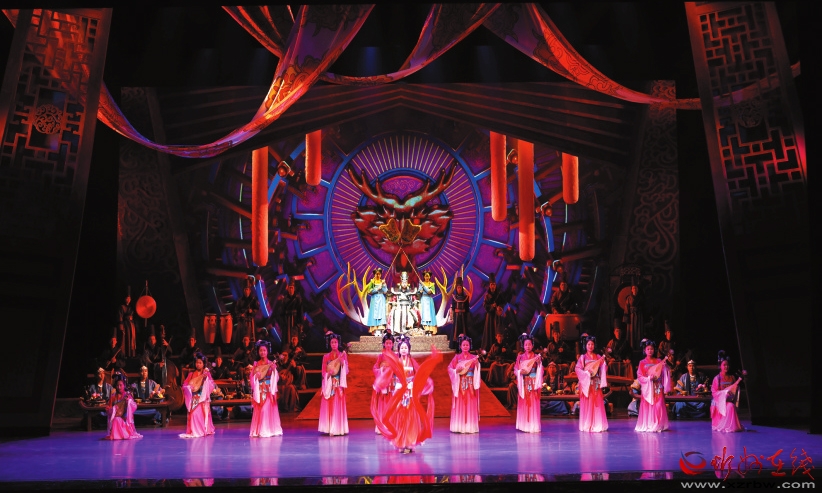 《滹源雅韻》以故事性手法生動講述了北魏孝文帝拓跋宏的四女兒誠信公主與其愛人崔恂之間的動人愛情傳說,全劇共分《得喜》《成長》《抗婚》《逃離》《尾聲》五幕,環(huán)環(huán)相扣,層層遞進。通過跌宕起伏的故事情節(jié)、優(yōu)美動聽的音樂旋律、凝練通俗的臺詞旁白、一招一式的形體動作和美輪美奐的舞美設計,生動勾勒出主人公敢于打破傳統(tǒng)枷鎖、反抗婚姻包辦、追求美好愛情的浪漫勇敢形象。伴隨著演員精彩的演繹,臺下觀眾無不深受感染。用千年前的樂器彈奏,舞姿也更加飄逸、曼妙起來。這不單是一場表演,更讓觀眾有了觸摸歷史、對話歷史的機會。