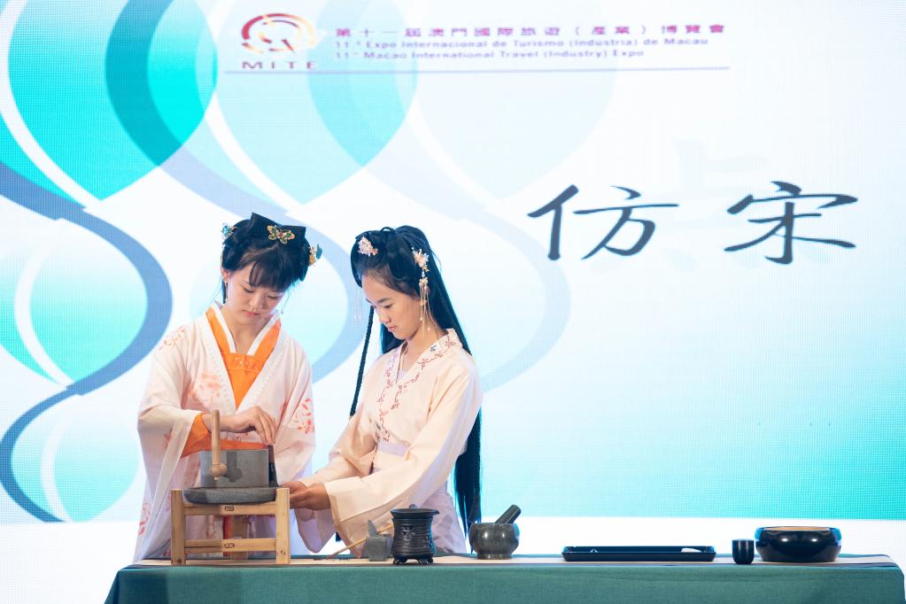 6月30日,表演者在澳門(mén)“茶和天下·雅集”暨茶文化之旅主題推廣活動(dòng)上展示仿宋點(diǎn)茶。新華社記者 張金加 攝