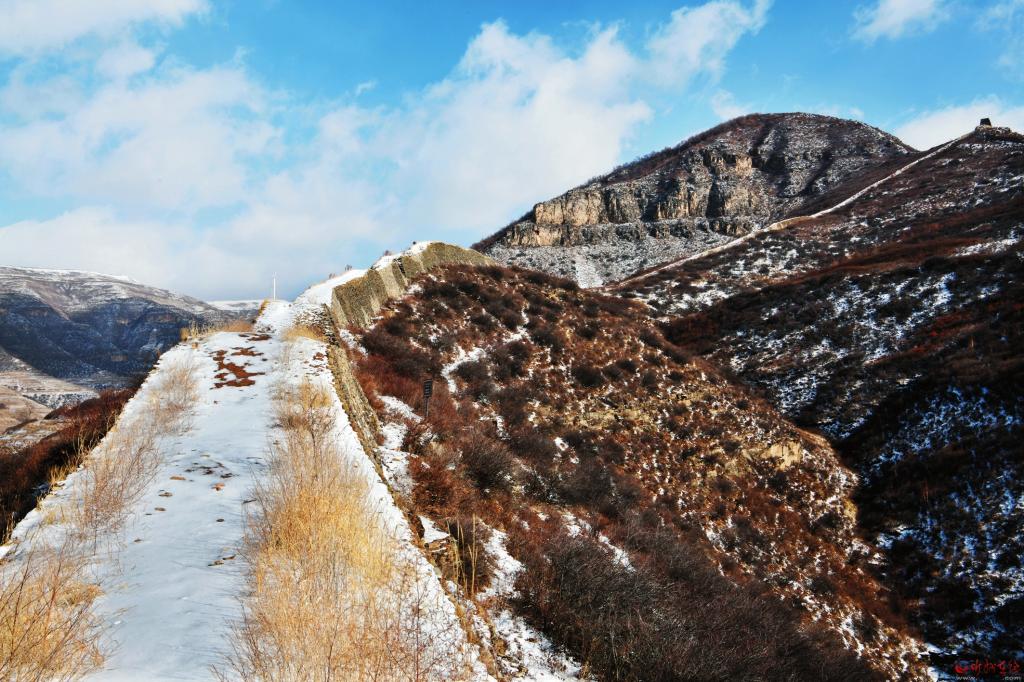 另一道長(zhǎng)城是這樣的:史書上記載的宋長(zhǎng)城出發(fā)地是草城川口天澗堡,實(shí)地中的草城川現(xiàn)在叫北川河,天澗堡古代可能有堡墻,如沒有,不可能有“川口有古城”的記載,可能歷經(jīng)千余年風(fēng)雨被河水沖刷掉了,現(xiàn)在堡墻已不太明顯但有古文化層遺跡,還有兩座規(guī)模較大的烽火臺(tái)。長(zhǎng)城從此出發(fā),向東爬上陡坡,順著一道山洼上到山頂。在山頂走了一公里余就與從興縣西來的北齊、隋修筑的早期長(zhǎng)城匯合,在陡峭的山頂上形成一個(gè)完美的“岢嵐結(jié)”,也就是俗話中的“二把叉”形狀。這段宋代獨(dú)立修筑的長(zhǎng)城大約有3公里。