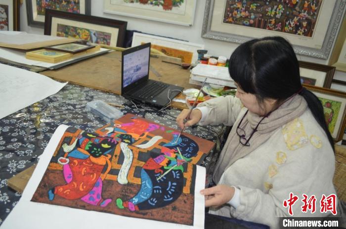 “小時(shí)候跟著奶奶學(xué)習(xí)納鞋底、刺繡,漸漸地喜歡上了繪制各種圖案,我的刺繡在村里也小有名氣。17歲那年,四川美術(shù)學(xué)院的老師到村里招收版畫(huà)學(xué)徒,我就報(bào)名了。當(dāng)時(shí)條件很艱苦,很多人不理解,被家里人說(shuō)不務(wù)正業(yè)。但我就是喜歡這些色彩、線(xiàn)條,一直堅(jiān)持到現(xiàn)在?!苯徽勚校畛芍フ勂鹚陌娈?huà)生涯。