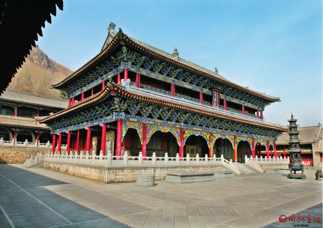 金閣寺位于五臺山,南臺之北,中臺之南,除五座臺頂?shù)乃聫R建筑外,金閣寺所處的地勢最高,海拔1900多米,距臺懷鎮(zhèn)15公里。唐代宗大歷五年(770年),從印度來華的三藏法師不空被詔往五臺山,他根據(jù)文殊菩薩顯圣處“金閣浮空”而創(chuàng)建了金閣寺。該寺銅鑄為瓦,瓦上涂金,以合“金閣”圣名。1986年該寺被省人民政府列為省級文物保護單位。