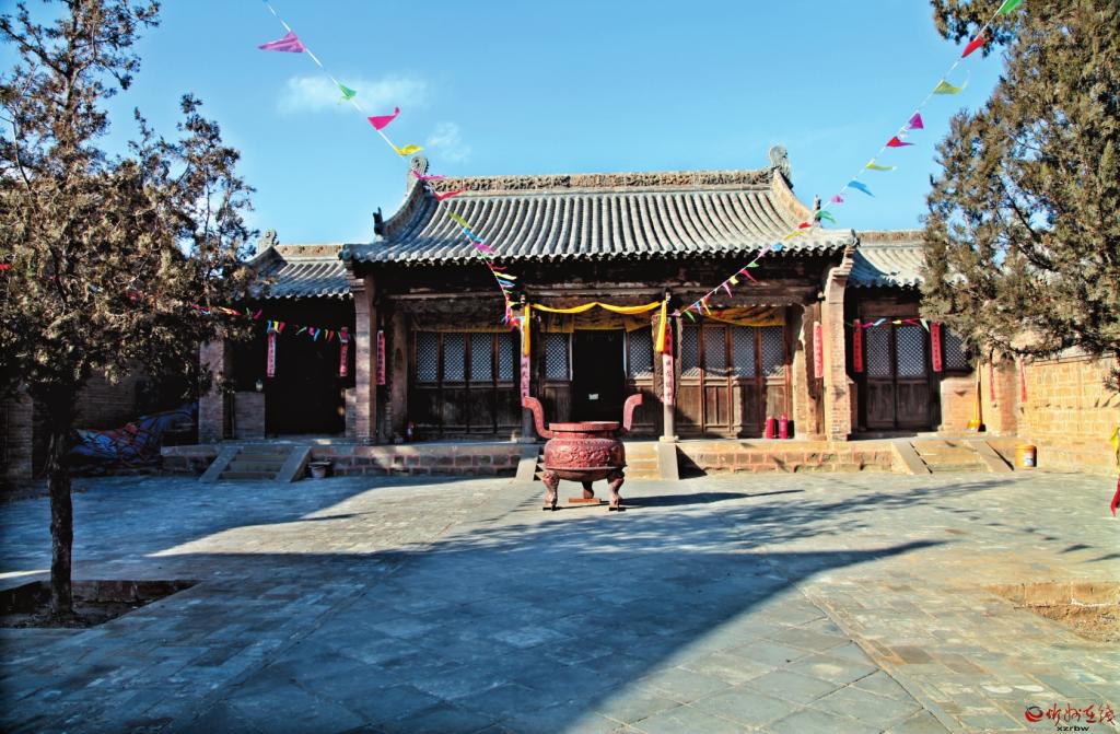 關帝廟:現(xiàn)存建筑有磚砌山門1座,面寬一間,硬山頂;左側鐘樓,基座石砌,中有窯洞,上部木構,硬山頂。正殿為關帝殿,面寬三間,進深三椽,硬山頂,斗拱一斗二升交麻葉,耍頭云形,龍首,象鼻,三間均安格扇門;殿內合榻,木雕水波形,神龕內供關云長;殿內東西壁滿繪清代三國演義壁畫48幅,共計31平方米。正殿左右各有一間小屋,進深二椽,硬山頂,格扇門,格扇窗,為僧舍。院東小殿一間,硬山頂,斗拱一斗二升交麻葉。